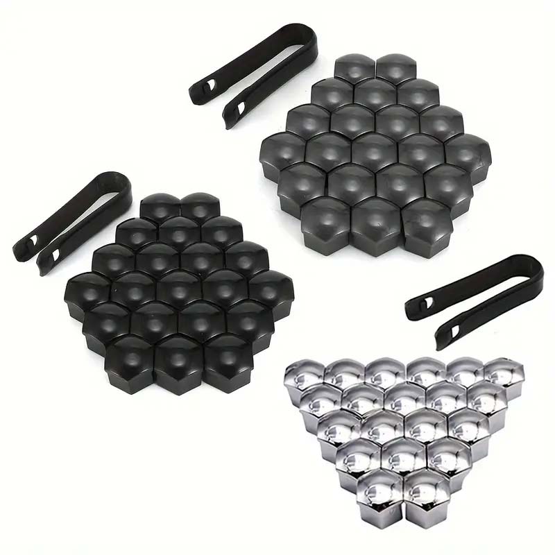 Rovněž jsou vynikající naše uzávěry ořechů, vyrobené z vysoce kvalitní ABS, které jsou robustní a chromovány pro vysoký lesk, odolnost proti teplu, odolnost proti vodě a odolnost proti rzi. Položivotní ořechová matice pokrývají plochou horního tvaru válce módy, široce vhodný. Návrh 21 mm pro širokou škálu vozidel. Před zakoupením měří rozměry matic kol. Návrh vnitřního vlákna má zřejmé výhody, upevnění a protiskluzové, všestranná ochrana hlavy šroubu a může také hrát stabilní roli ve špatných silničních podmínkách.