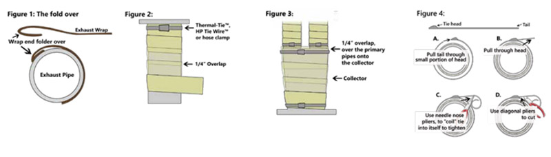• 1/4 ”překrývání - cokoli přes 1/4” může nad izolovat potrubí. Při ovinutí kolem ohybu může být nutné překročit 1/4 “a to je v pořádku. Nezapomeňte se držet překrývání 1/4” pro ostatní části výfukového systému.